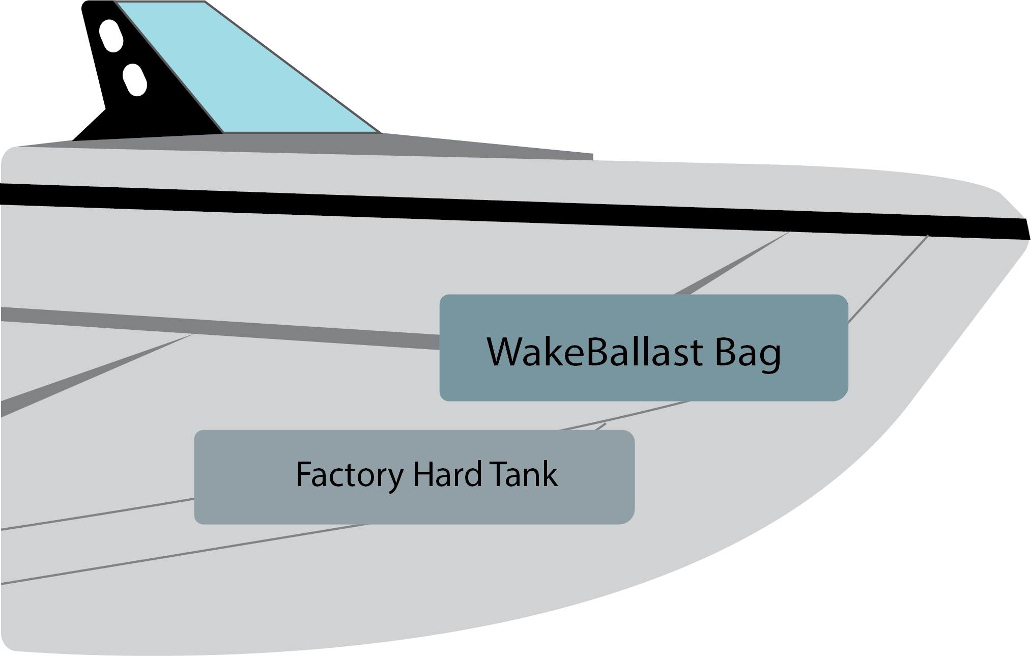 The WakeBallast ballast bags integratenwith your boat's factory center hard tank. The additional ballast is controlled using the switches on your dash, and not require any additional effort to fill and drain. The updated ballast system will run just like your stock system but now with an increased overall capacity for improvements in your wake.