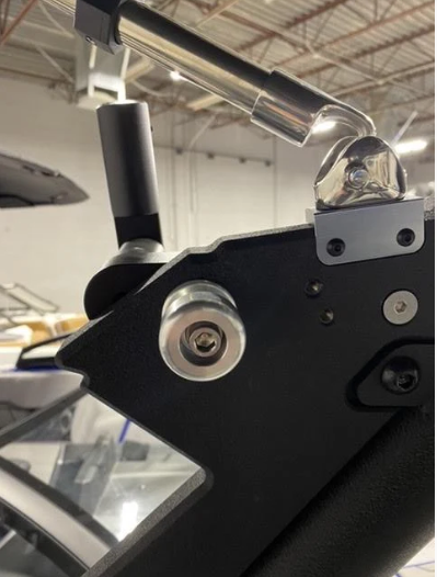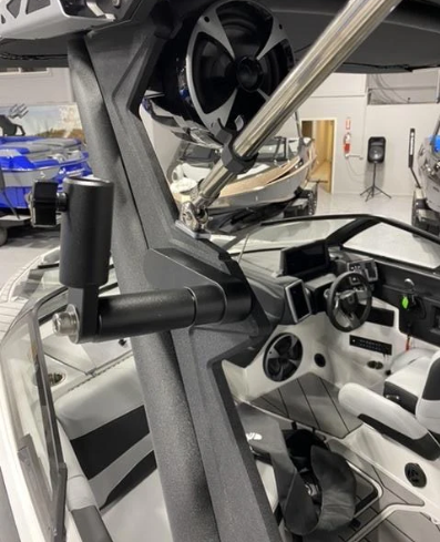 This flag mount will mount to one of the rack mounts on the tower, USUALLY THE UPPER POSITION. The mounts are universal and can be mounted on the port or starboard side. The flag holder is just over 1 inch so it will accept a 1 inch flag pole. The minimum flag pole size is 5/8 in order for the knob to clamp on it. It comes with the hex key (Allen) wrench for install.